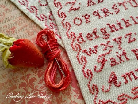 I never fail to be charmed by the humble marking sampler. I think it is their sense of order and simplicity that appeal to me as much as the way they exemplify the value placed on industry and knowledge. And when a marking sampler is worked with red thread...well, what more can I say?
