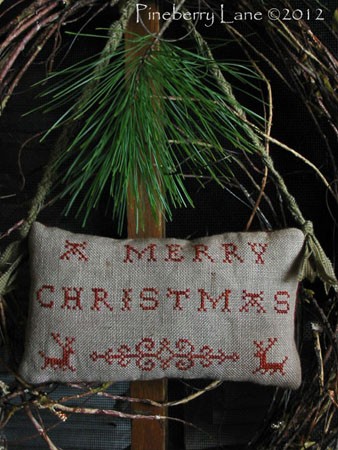 A humble bit of redwork that can be framed or fashioned into a pinkeep. The heartfelt sentiment, "A Merry Christmas," is accompanied by traditional motifs of deer and a scroll. This is a quick stitch and would make a wonderful little gift for the needlework lover on your Christmas list.